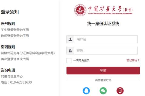 使用校园网访问https://jwczj.cumtb.edu.cn:85/b/,登录统一身份认证系统。