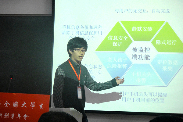 2013年11月16至17日,由教育部高等教育司主办、中南大学承办的“第六届全国大学生创新创业年会”在中南大学隆重举行。我校机电与信息工程学院创业实践项目“智能人员管理系统的集成与推广应用”作为学校创业类项目首次入选年会并在创业项目推介会上进行报告交流与推广,项目代表徐昕军同学与指导教师杨峰教授参加了本届年会。