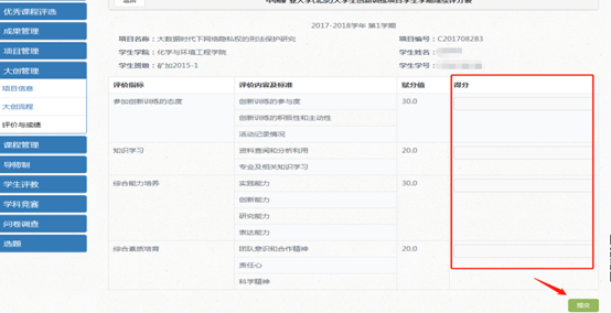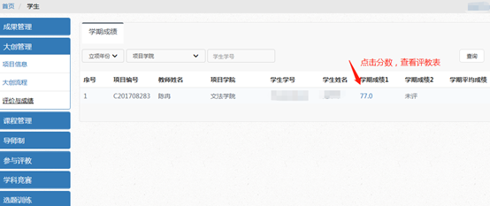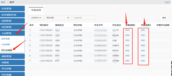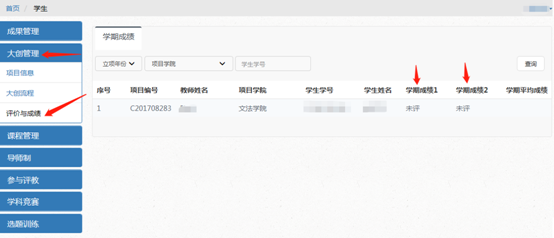 (1)大创管理-评价与成绩-学期成绩1和学期成绩2