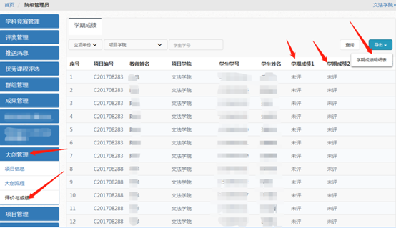 (2)大创管理-评价与成绩-导出(学期成绩明细表)