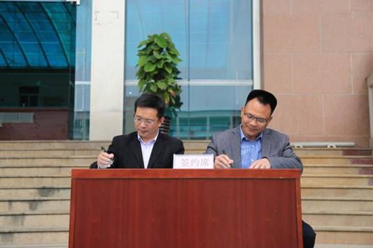 中国矿业大学(北京)王家臣副校长向都安高中授予“优质生源基地”牌匾,教务处处长、招生办公室主任刘波与都安高中校长蓝志标共同签署合作协议书。
