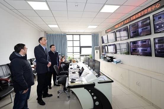 3月1日是2020-2021学年第二学期开学的第一天,校长葛世荣来到学校主控室,检查学校开学第一天的情况,刘波副校长、教务处处长郭东明陪同检查。郭东明处长对本学期错峰返校期间的本科教学工作安排以及第一天开展线上教学的有关情况作了汇报。